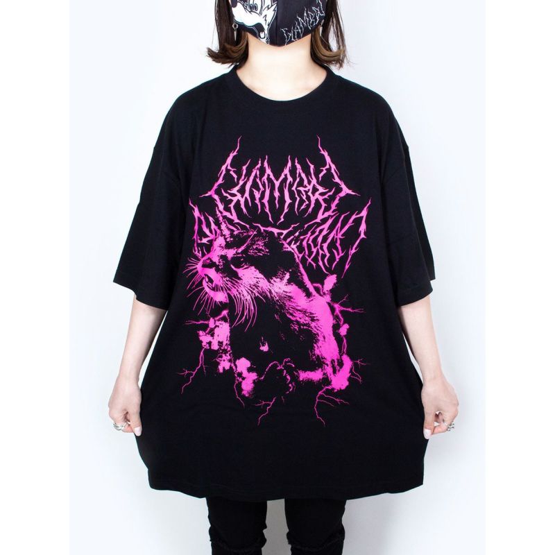 【予約販売8/20-27】GLAMBOY×PredatorRat Collaboration BiG-T「PredatorRat Kawauso」Tシャツ〈黒×蛍光ピンク/XXL〉