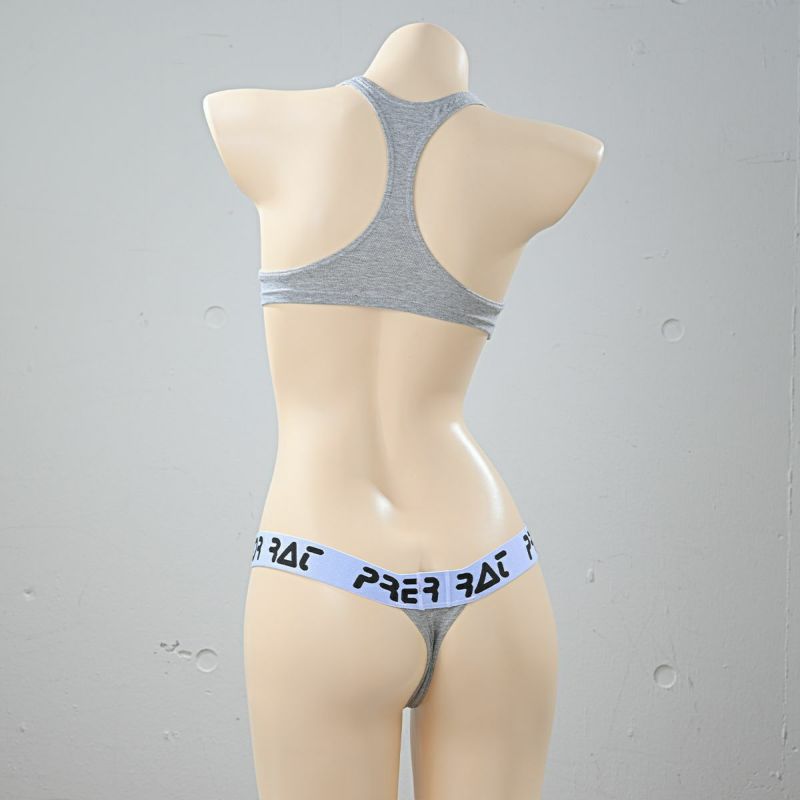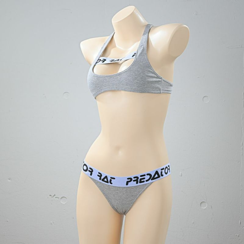 プレデターラットスタイルロゴ半乳スポーツブラ&プレデターラットスタイルロゴスポーツTバックパンツ〈グレー〉セット