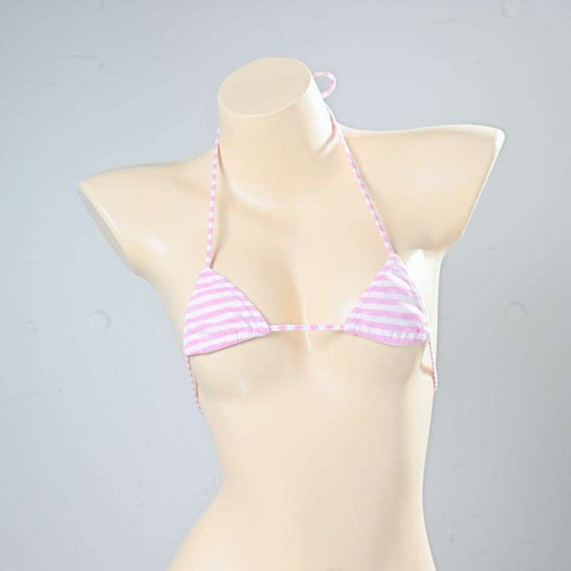 しましま グラビアのマイクロ三角ブラ〈細ボーダーピンク縞〉