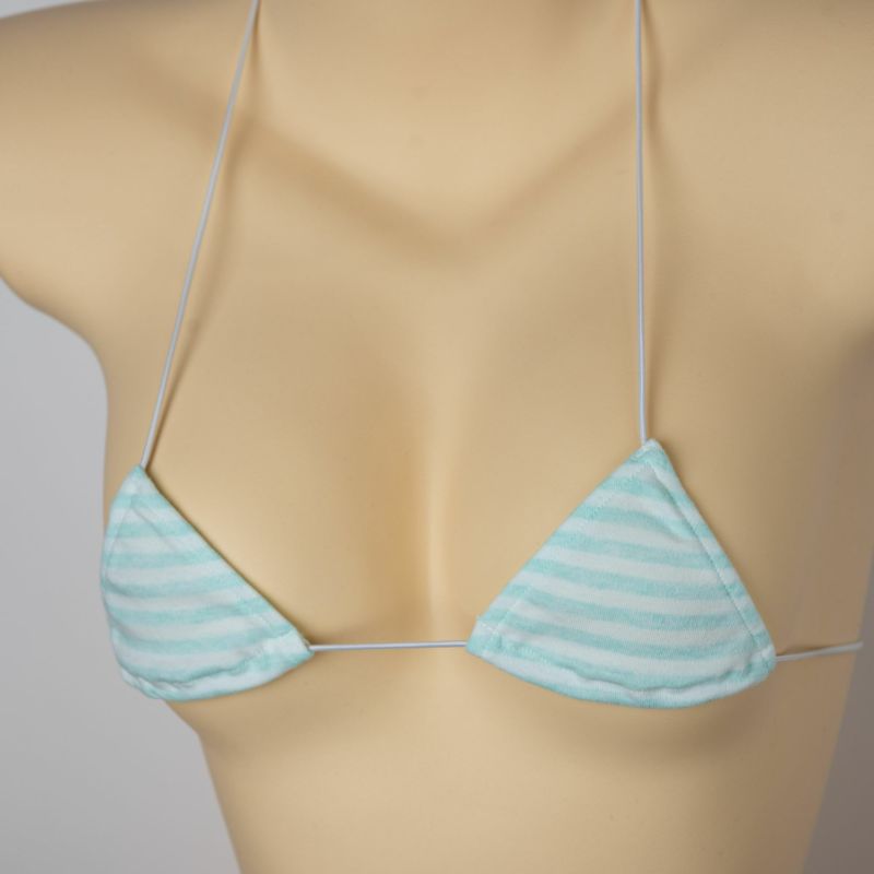 しましま グラビアのマイクロ三角ブラ 極細紐〈細ボーダーミント縞〉