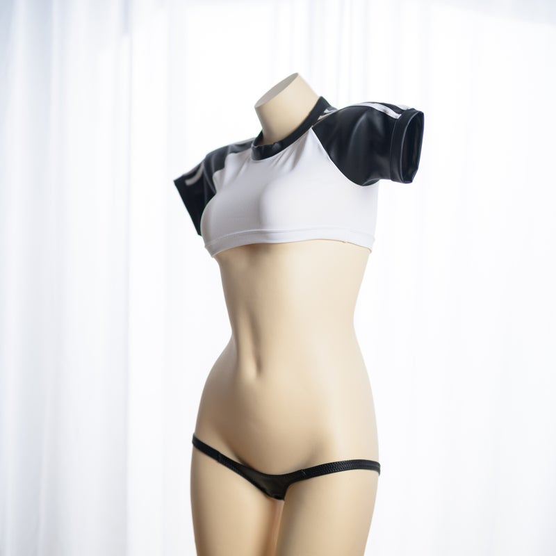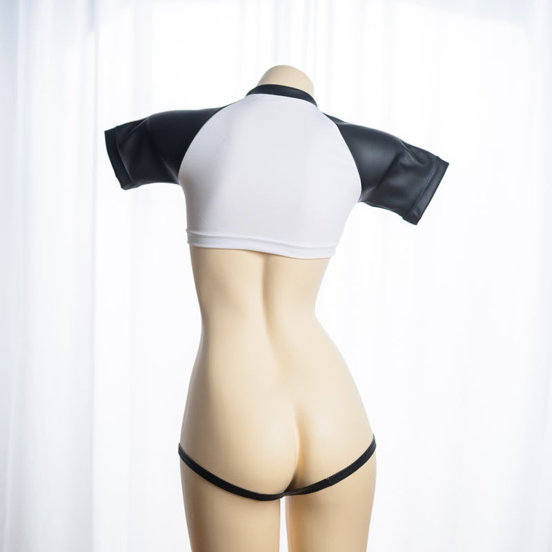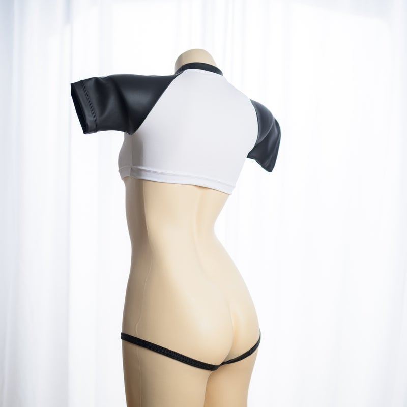 ストレッチレザー体操服とウルトラローライズTバックのセットです。