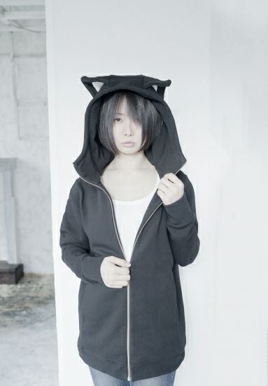 PredatorRatデザイン「ロング丈猫耳パーカー」〈黒〉