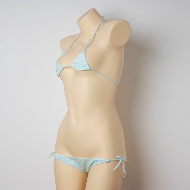 しましま グラビアのマイクロ三角ブラ〈細ボーダーミント縞〉& しましま グラビアの超ローライズ紐パンツ〈細ボーダーミント縞〉 セット
