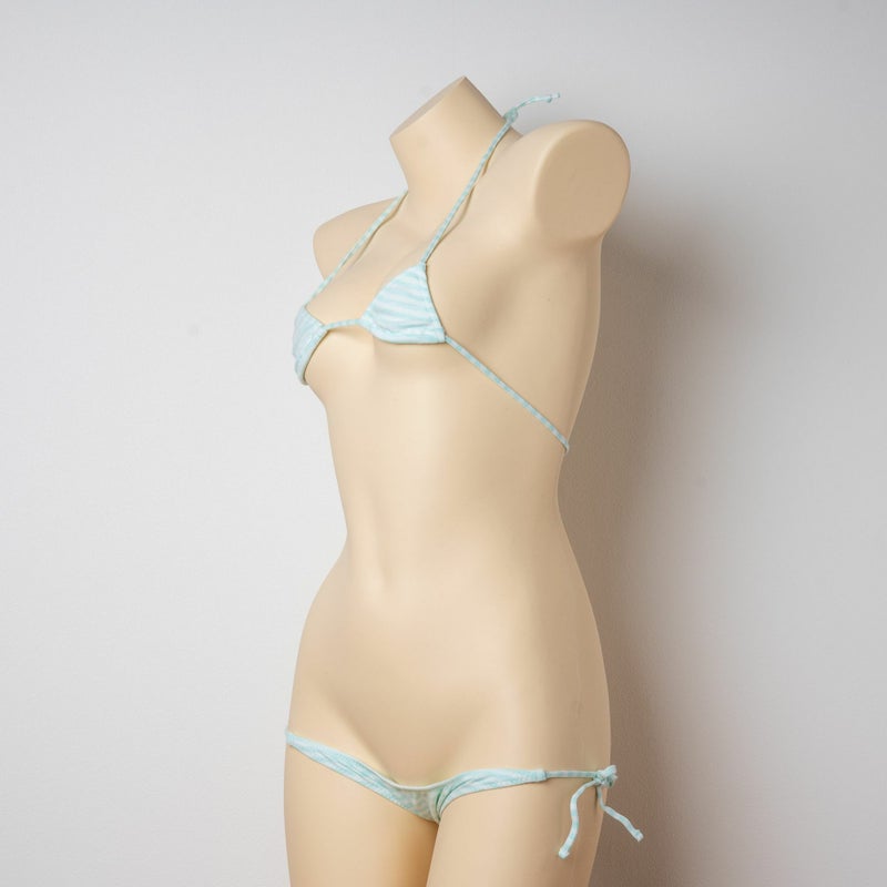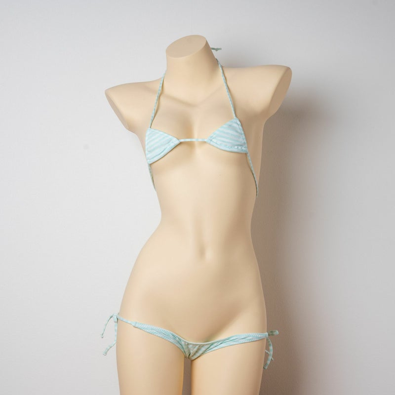 しましま グラビアのマイクロ三角ブラ〈細ボーダーミント縞〉& しましま グラビアの超超ローライズ紐パンツ〈細ボーダーミント縞〉 セット