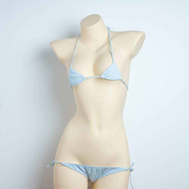 しましま グラビアのマイクロ三角ブラ〈極細ボーダーブルー縞〉& しましま グラビアの超超ローライズ紐パンツ〈極細ボーダーブルー縞〉 セット