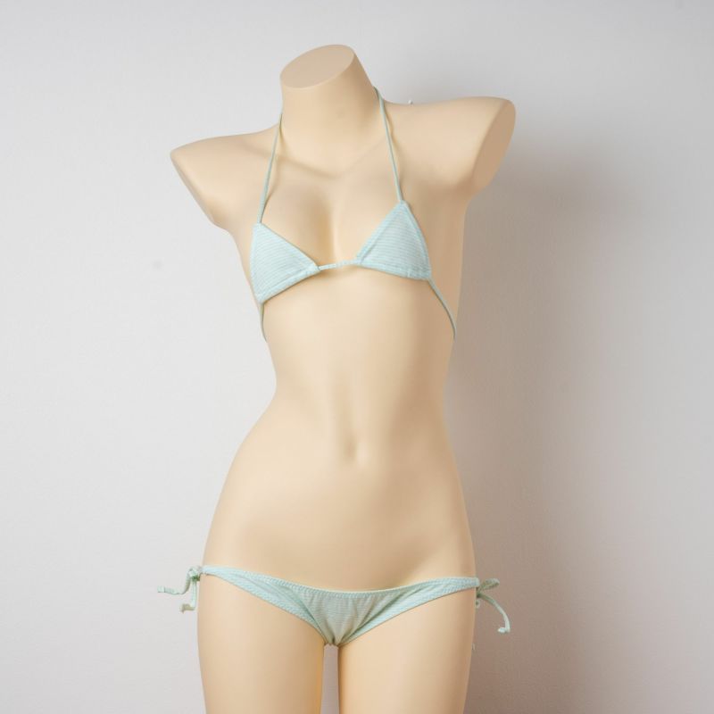 しましま グラビアのマイクロ三角ブラ〈極細ボーダーミント縞〉& しましま グラビアの超超ローライズ紐パンツ〈極細ボーダーミント縞〉 セット