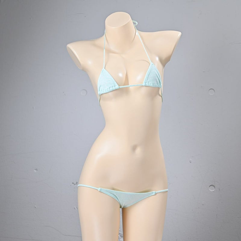 しましま グラビアのマイクロ三角ブラ〈極細ボーダーミント縞〉& しましま グラビアの超超ローライズサイドループパンツ〈極細ボーダーミント縞〉 セット
