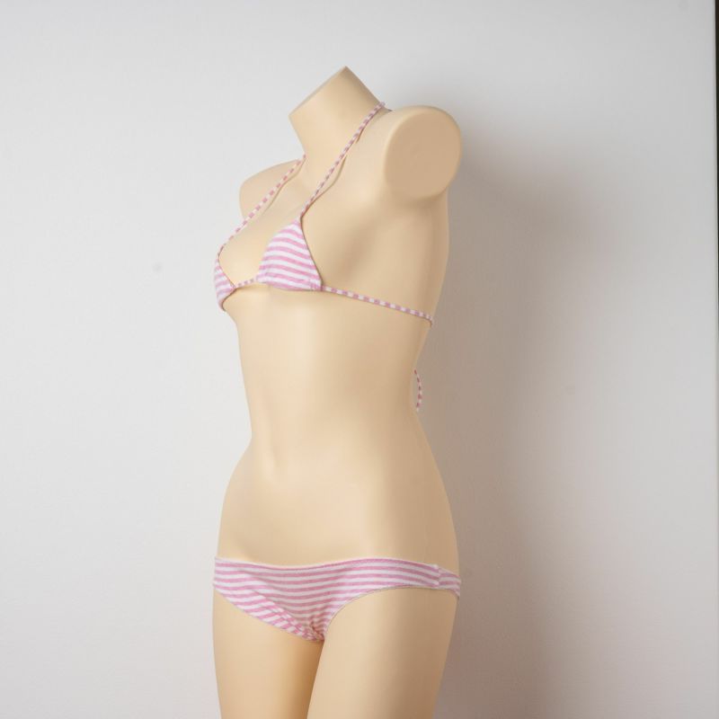 しましま グラビアのマイクロ三角ブラ〈細ボーダーピンク縞〉& しましま グラビアの超ローライズパンツ〈細ボーダーピンク縞〉 セット