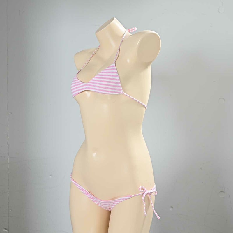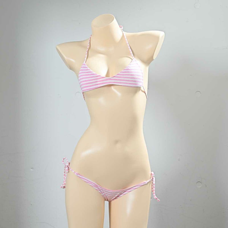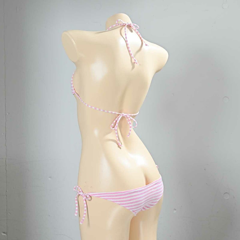 しましま グラビアのスポーツブラ〈細ボーダーピンク縞〉& しましま グラビアの超ローライズ紐パンツ〈細ボーダーピンク縞〉 セット