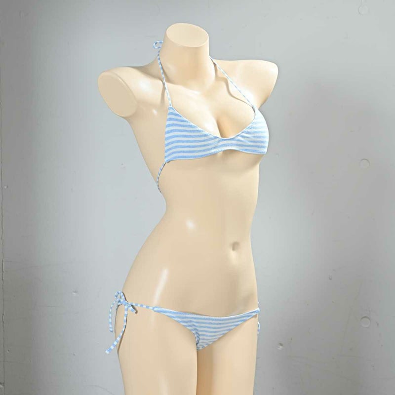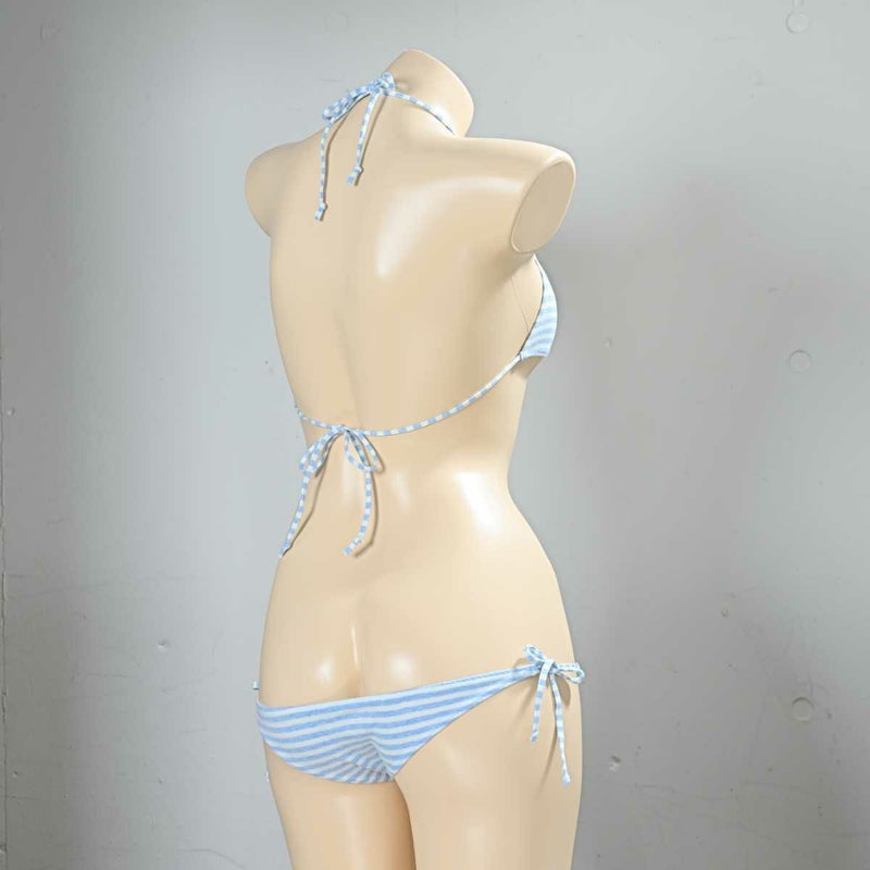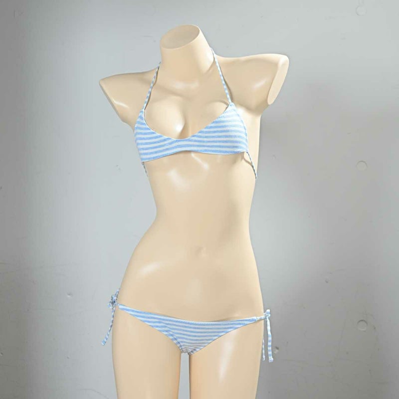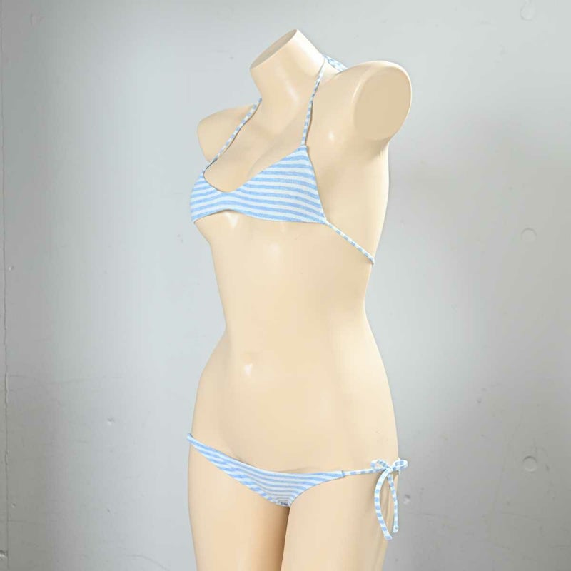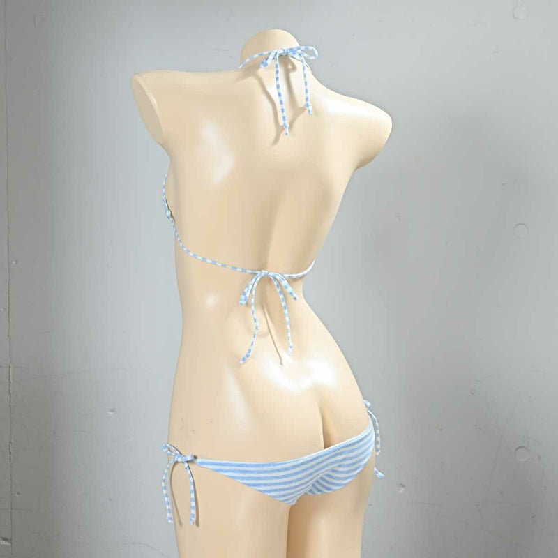 しましま グラビアのスポーツブラ〈細ボーダーブルー縞〉& しましま グラビアの超ローライズ紐パンツ〈細ボーダーブルー縞〉 セット