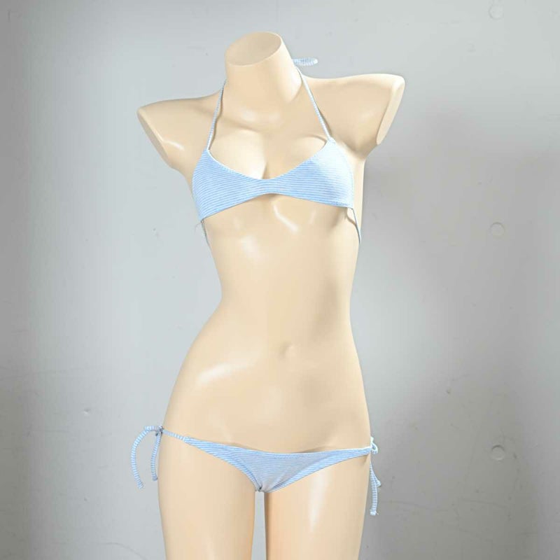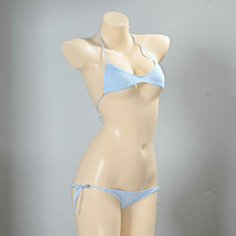 しましま グラビアのスポーツブラ〈極細ボーダーブルー縞〉& しましま グラビアの超ローライズ紐パンツ〈極細ボーダーブルー縞〉 セット