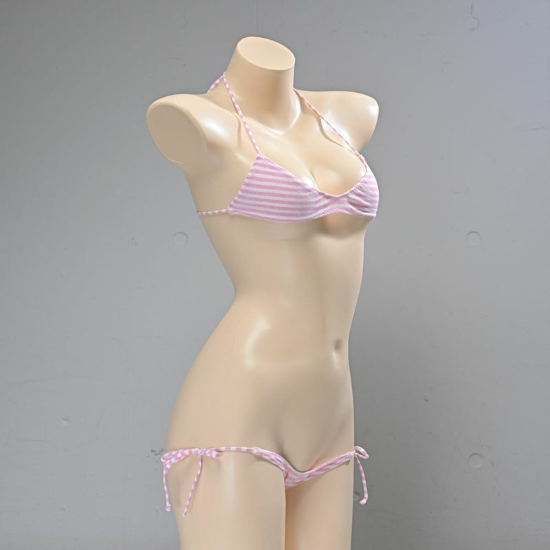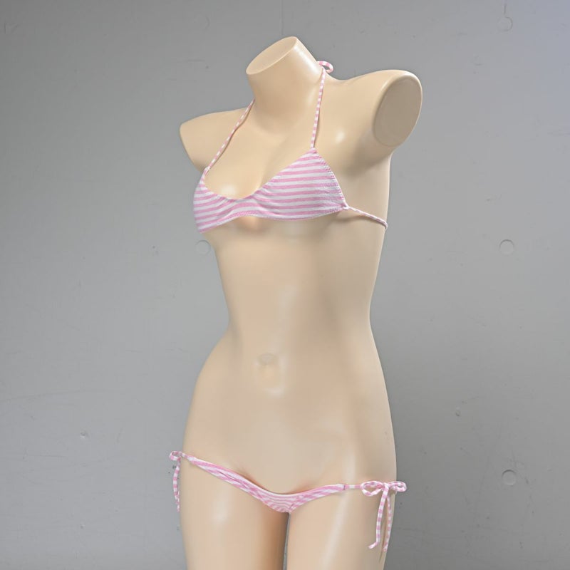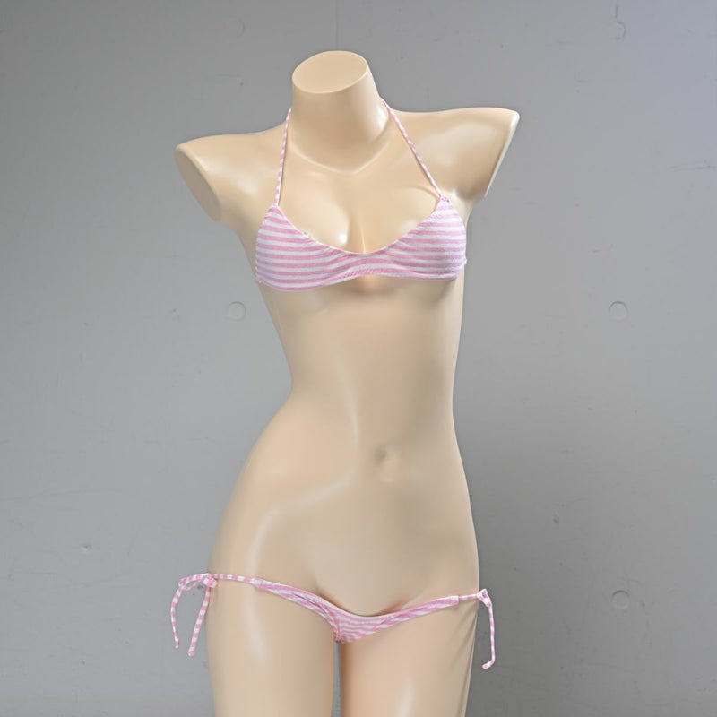 しましま グラビアのスポーツブラ〈細ボーダーピンク縞〉& しましま グラビアの超超ローライズ紐パンツ〈細ボーダーピンク縞〉 セット