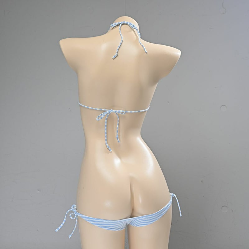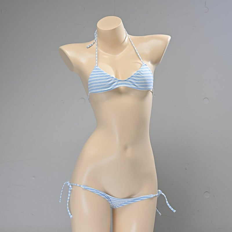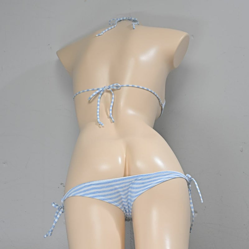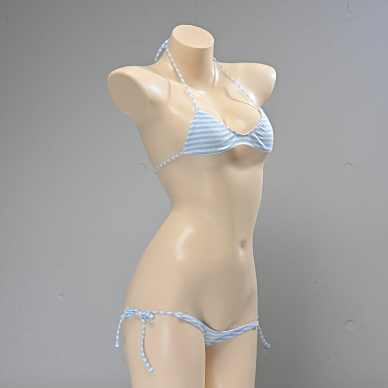 しましま グラビアのスポーツブラ〈細ボーダーブルー縞〉& しましま グラビアの超超ローライズ紐パンツ〈細ボーダーブルー縞〉 セット