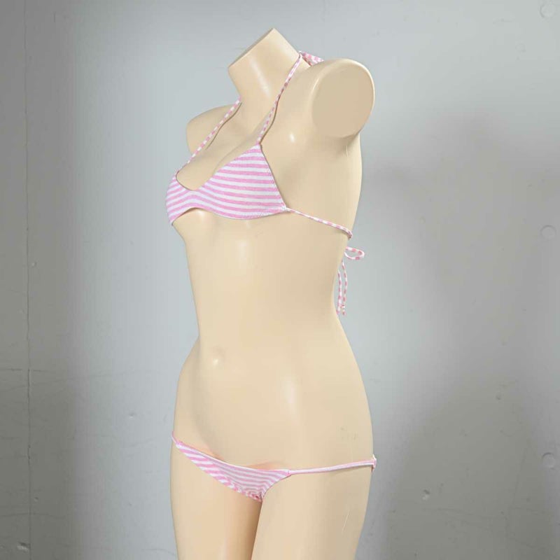 しましま グラビアのスポーツブラ〈細ボーダーピンク縞〉& しましま グラビアの超ローライズサイドループパンツ〈細ボーダーピンク縞〉 セット