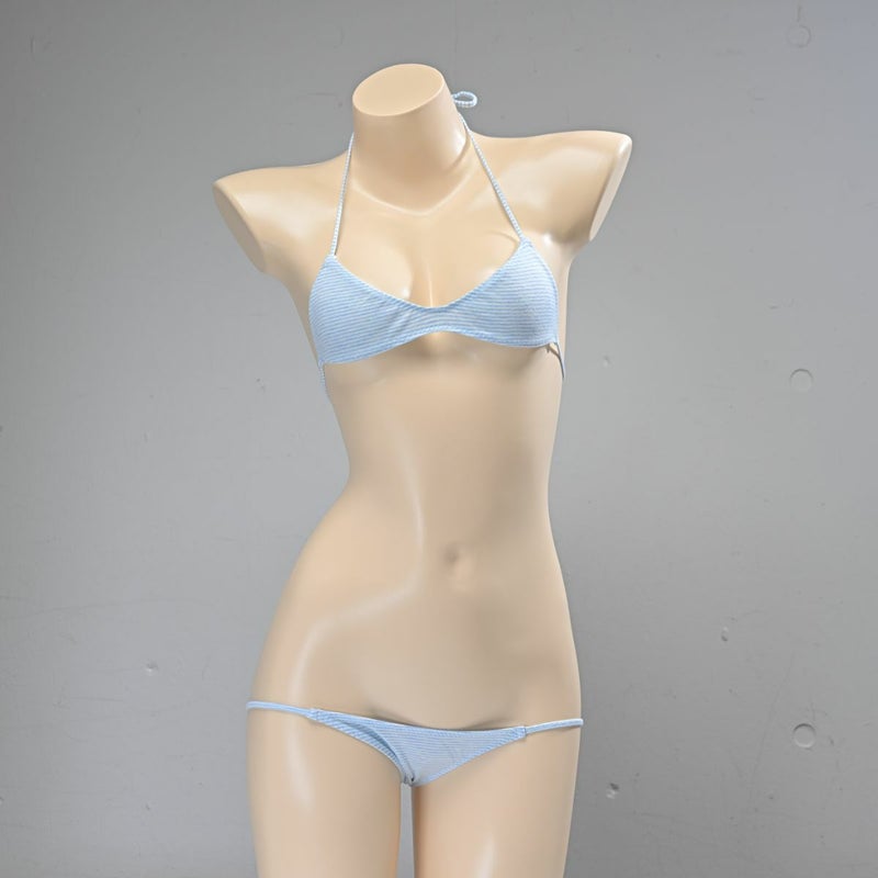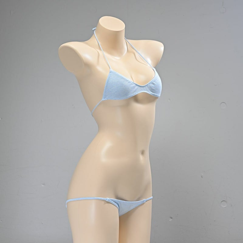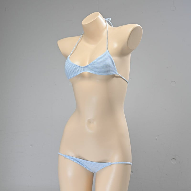 しましま グラビアのスポーツブラ〈極細ボーダーブルー縞〉& しましま グラビアの超超ローライズサイドループパンツ〈極細ボーダーブルー縞〉 セット