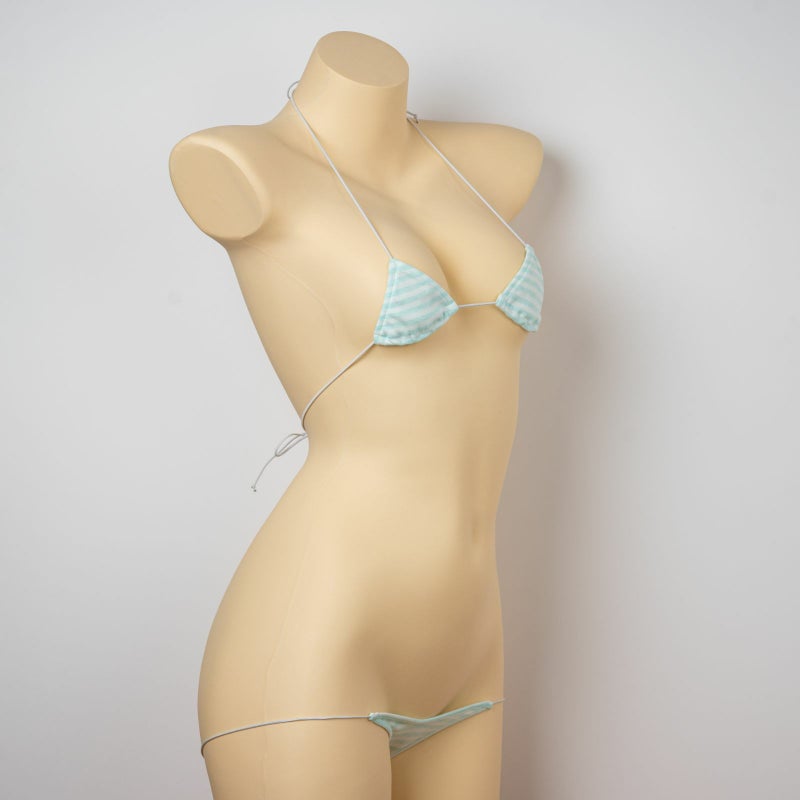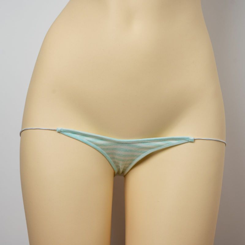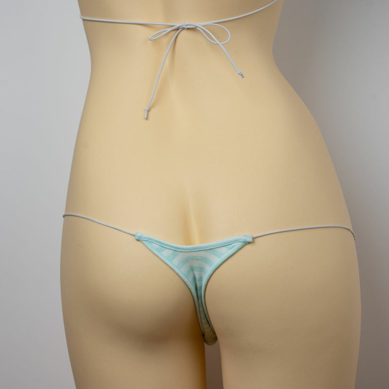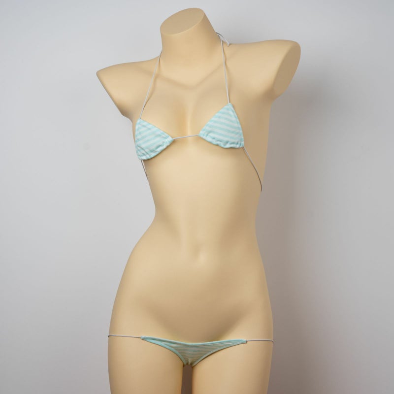 しましま グラビアのマイクロ三角ブラ 極細紐 &しましま グラビアのウルトラローライズハイレグTバック〈細ボーダーミント縞〉