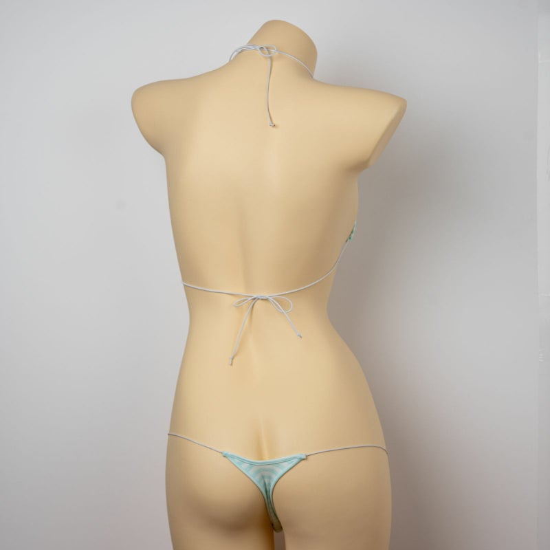 グラビアでよく見るが、どこにも売っていない極細紐のマイクロ三角ブラ&ぷれでたーらっとの定番ウルトラローライズハイレグTバックをグラビアで見る感じの極細腰紐に改造しました♪