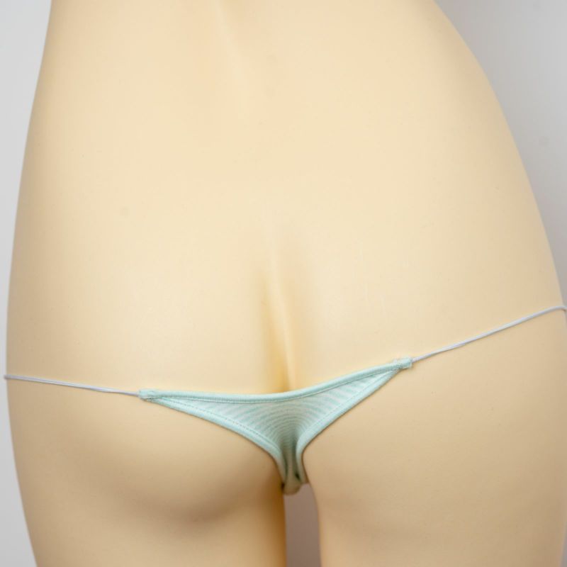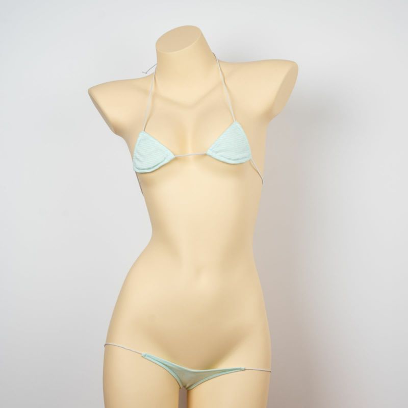 しましま グラビアのマイクロ三角ブラ 極細紐 &しましま グラビアのウルトラローライズハイレグTバック〈極細ボーダーミント縞〉