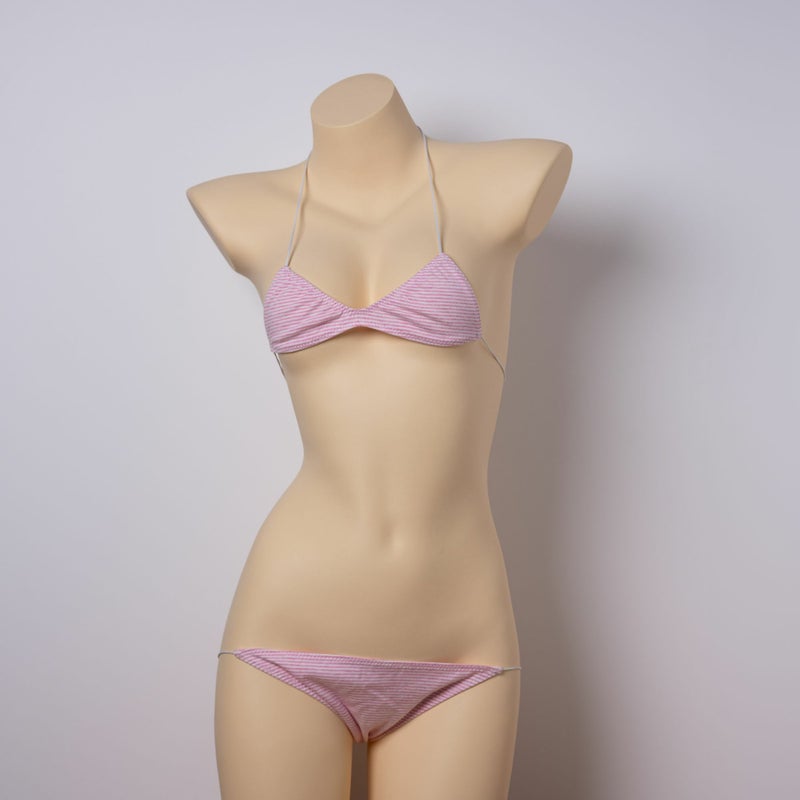 しましま グラビアのスポーツブラブラ 極細紐 &しましま グラビアの超ローライズパンツ 極細紐〈極細ボーダーピンク縞〉セット