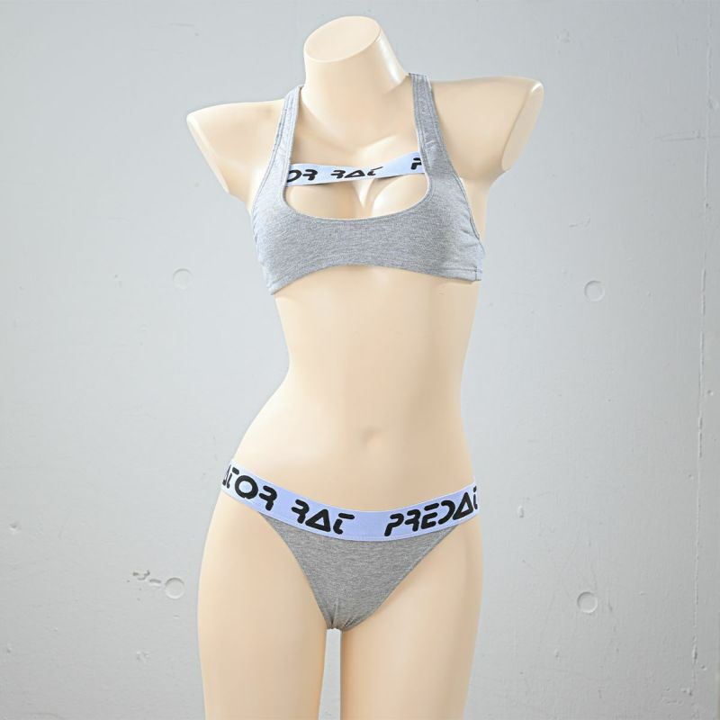 プレデターラットスタイルロゴ半乳スポーツブラ&プレデターラットスタイルロゴスポーツハーフバックパンツ〈グレー〉セット