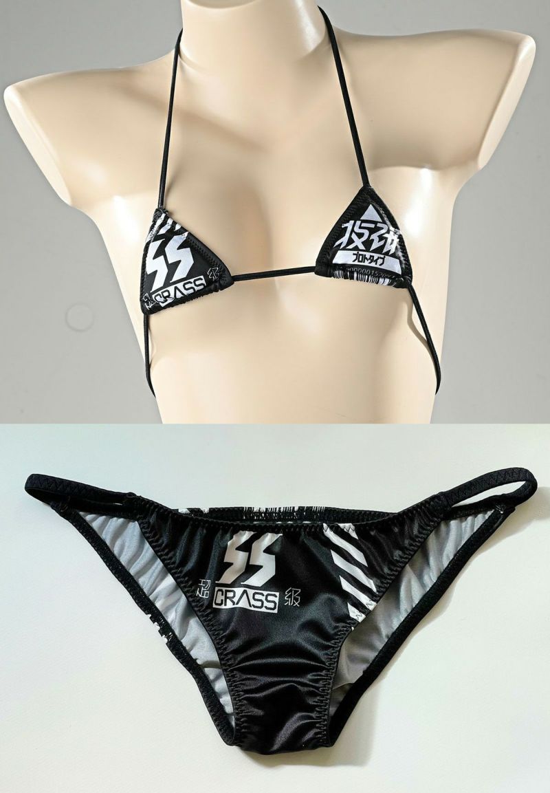 中央町戦術工芸×PredatorRat グラフィカルマイクロ三角ブラ(パット入り・水着素材)「_type SS」〈黒〉