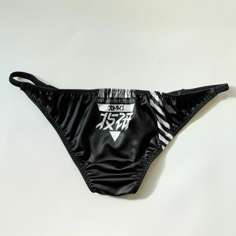 中央町戦術工芸×PredatorRat グラフィカルマイクロ三角ブラ(パット入り・水着素材)「_type SS」〈黒〉 & 中央町戦術工芸×PredatorRat 超ローライズ グラフィカルマイクロサイドループパンツ「_type SS」〈黒〉 セット