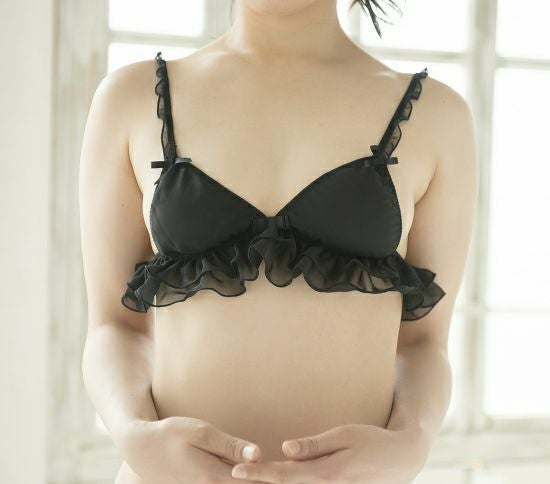 シフォンバックリボンノンワイヤーブラ〈黒〉