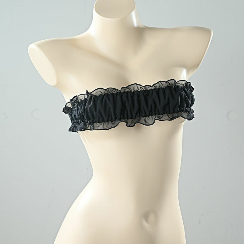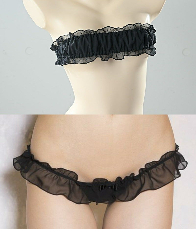 ナローシフォン チューブトップブラ〈黒〉& 超ローライズ シフォンリボンパンツ〈黒〉セット