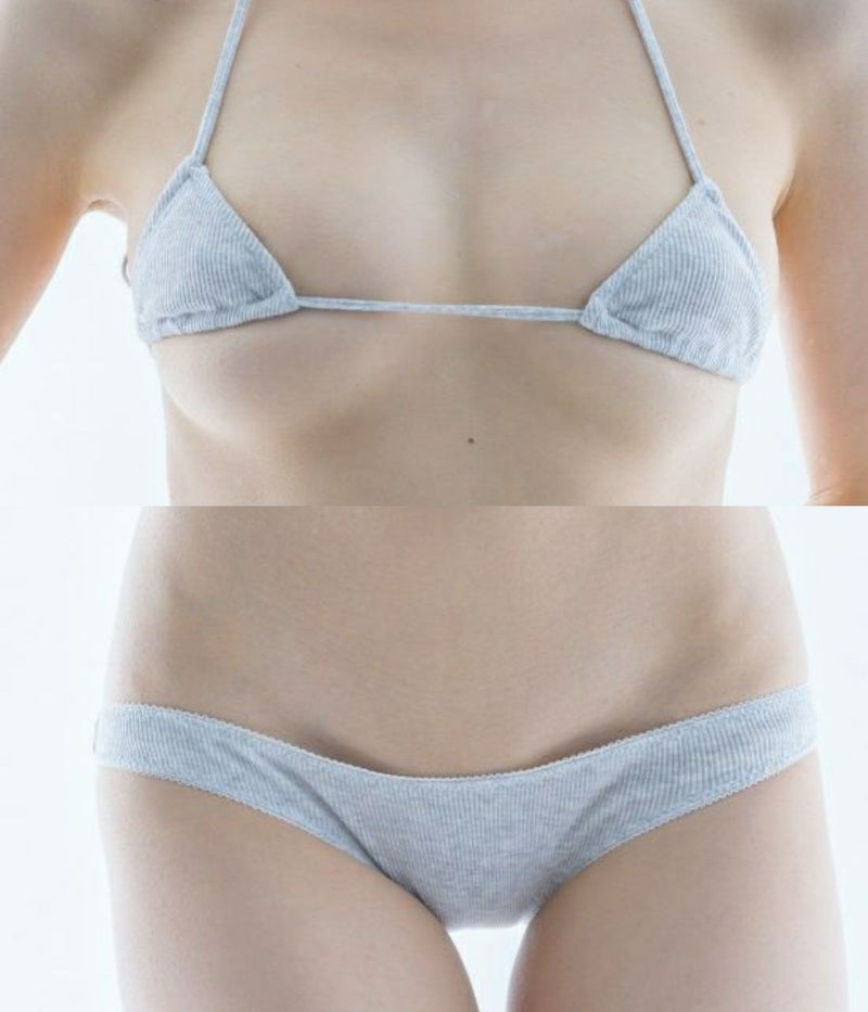 リブ素材 三角ブラ〈ライトグレー〉& リブ素材 超ローライズパンツ〈ライトグレー〉セット