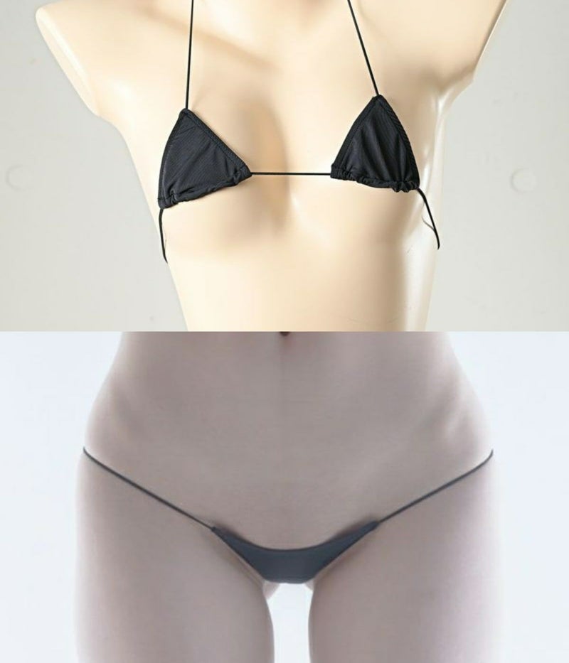 グラビアのマイクロ三角ブラ すべすべ素材 〈黒〉 & アンダーTバック〈黒〉 セット
