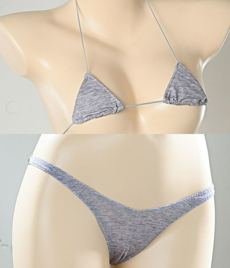 グラビアのマイクロ三角ブラ すべすべ素材 〈グレー〉 & 超ローライズセンターシーム ハイレグTバック 〈グレー〉 セット