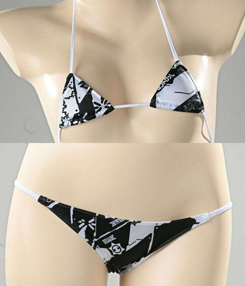 中央町戦術工芸×PredatorRat グラフィカルマイクロ三角ブラ(パット入り・水着素材)「_type DisTrotion」〈白×黒〉