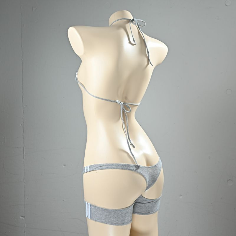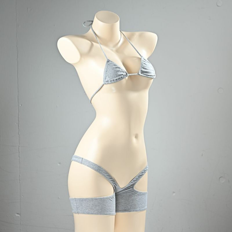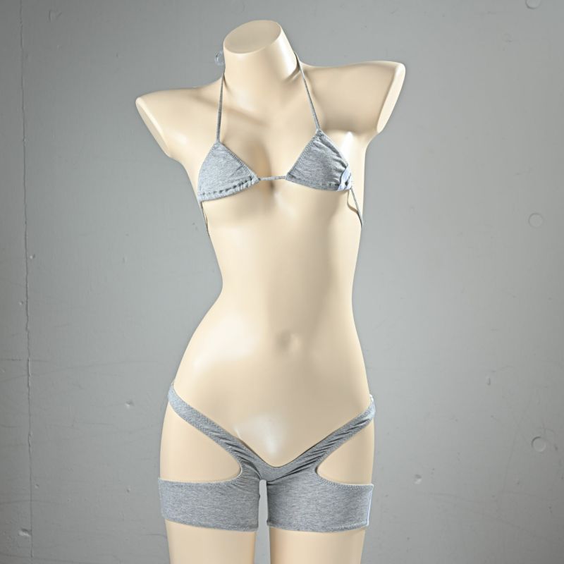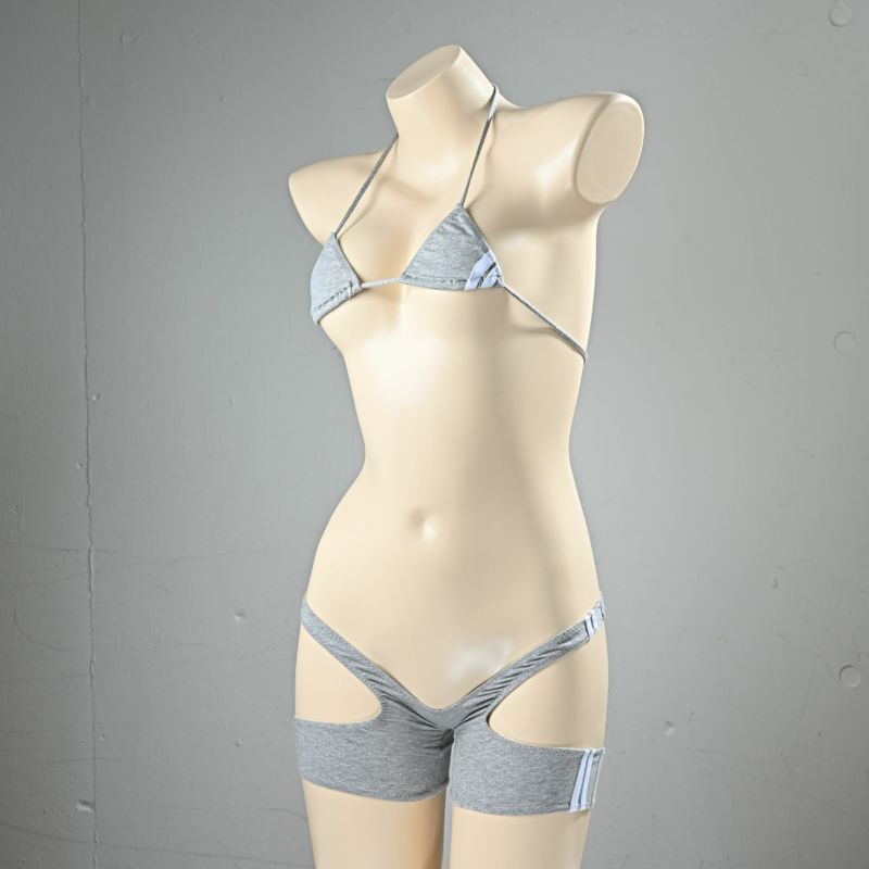 グラビアのマイクロ三角ブラ ライン入り&グラビアの紙魚丸×PredatorRat「Tバックスパッツ」コットン素材 ライン入り〈グレー×白ライン〉セット