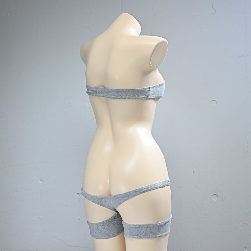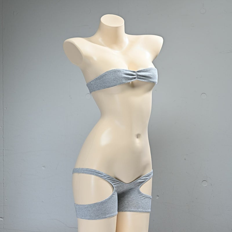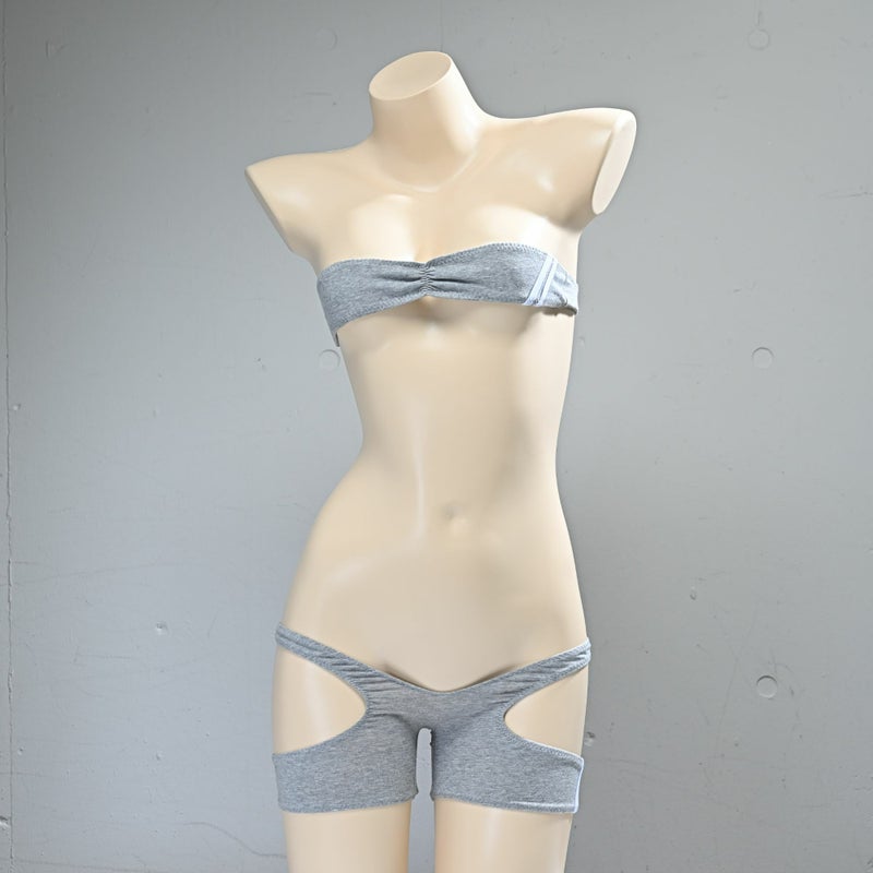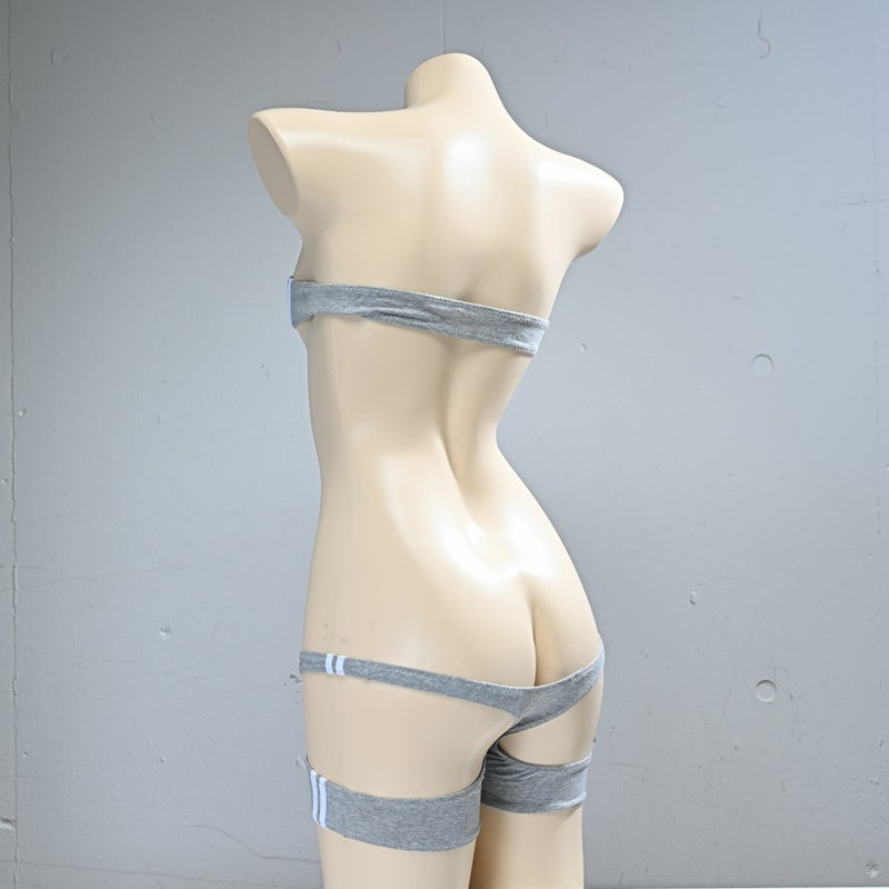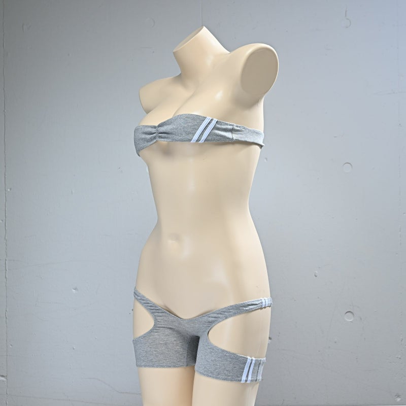 グラビアのナローチューブトップブラ ライン入り& spa-0135グラビアの紙魚丸×PredatorRat「Tバックスパッツ」コットン素材 ライン入り〈グレー×白ライン〉セット