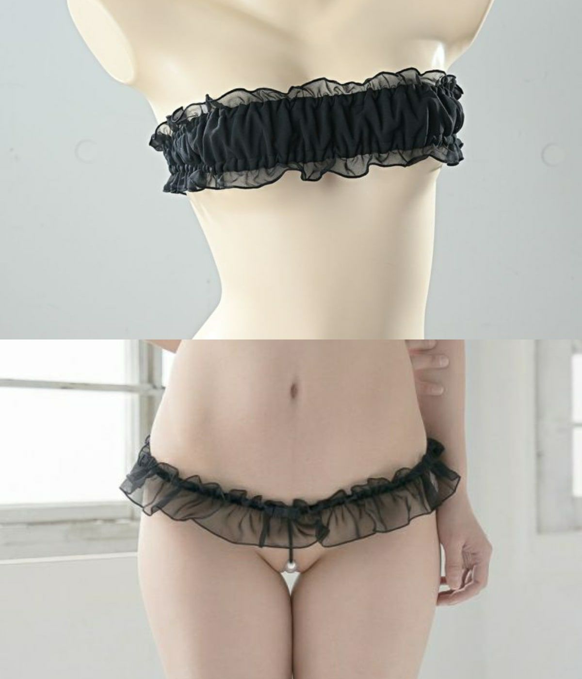 他の画像を見る ナローシフォンチューブトップブラ 〈黒〉 & 超ローライズシフォン玉パンツ 〈黒×黒リボン〉 セット Price ¥ 9,130 税込 ビジネス価格 ¥ 9,130 税込 カートに入れる お気に入りに登録する