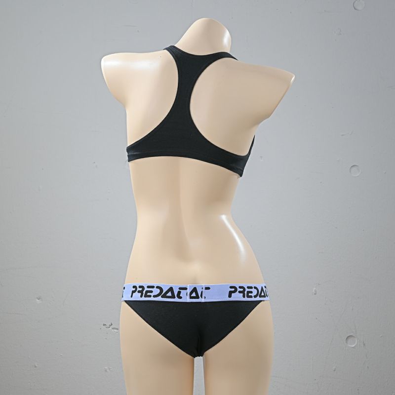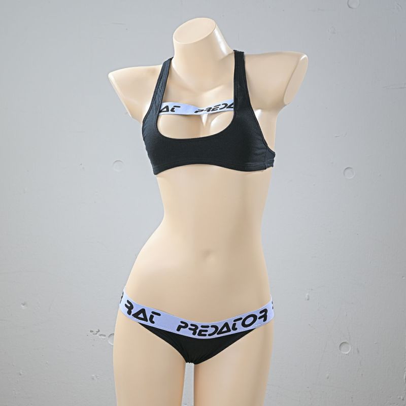 プレデターラットスタイルロゴ半乳スポーツブラ&プレデターラットスタイルロゴスポーツハーフバックパンツ〈黒〉セット
