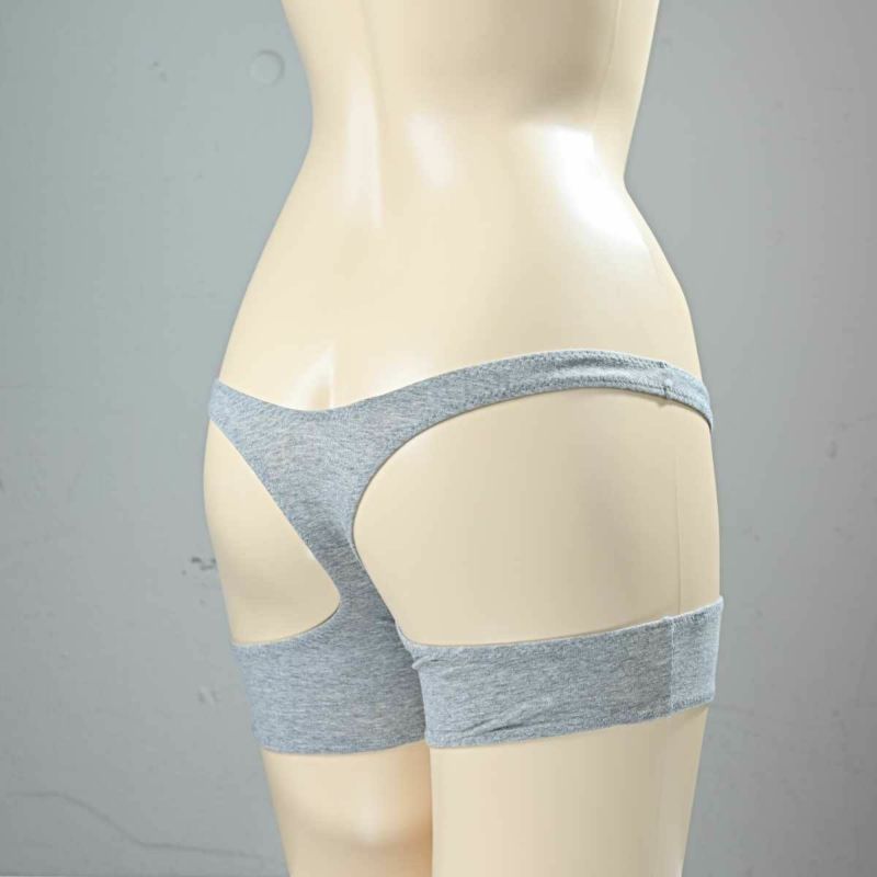 【グラビアの紙魚丸×PredatorRat「Tバックスパッツ」コットン素材 ライン入り〈グレー×白ライン〉】