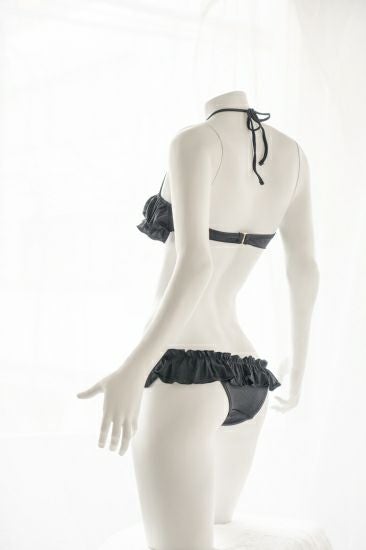 フリルローライズビキニ水着〈黒〉