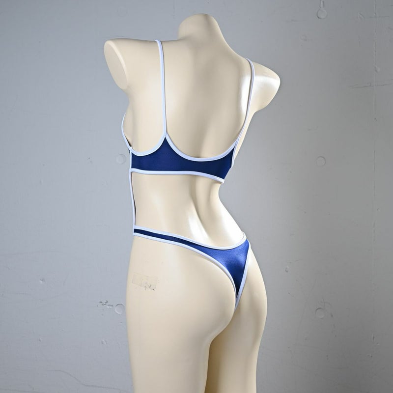 グラビアのハイレグ競泳水着Tバック(裏地なし)〈光沢ネイビー×白ライン〉