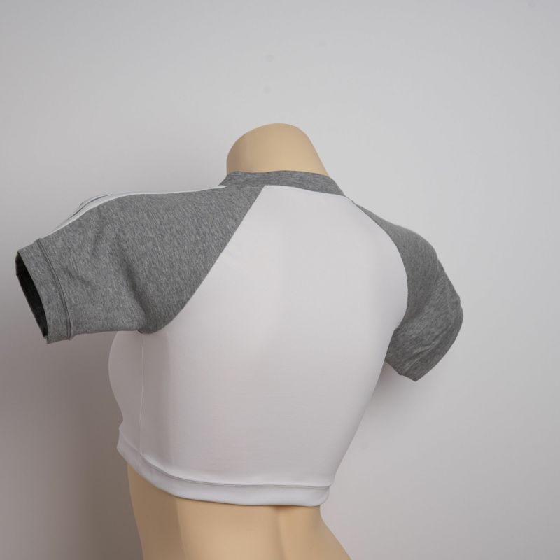 光沢ストレッチ体操服ハーフ丈上着〈グレー袖×白ライン〉