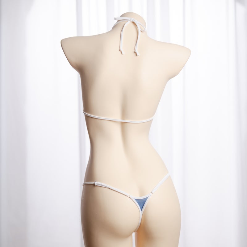 グラビアのGストリングビキニ(裏地なし) 〈ストレッチデニム×白ライン〉