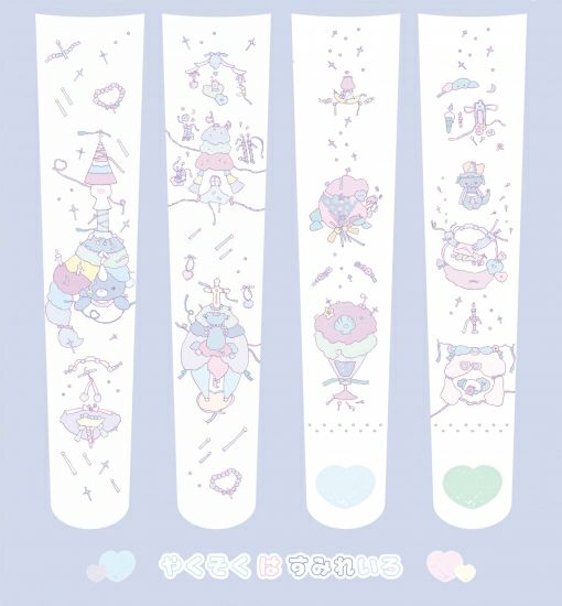 淡い配色がたまらない、ゆめさん(旧名:ほそやまだとみえ)の新作ニーハイ第2弾!学校の校則が厳しくなければぜひ制服にも合わせてみてくださいね!