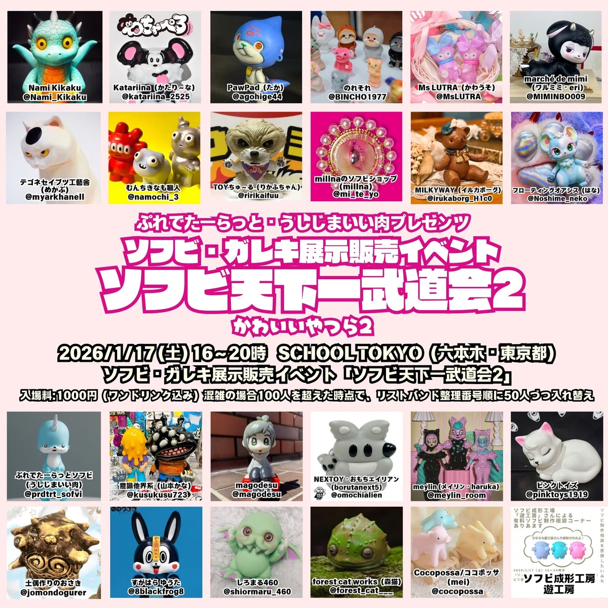「かわいいやつら」というコンセプトで、うしじまいい肉がお声がけさせていただいた24作家さんでソフビ&ガレキ即売会を開催します♪