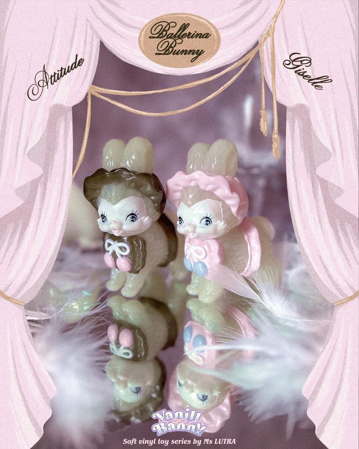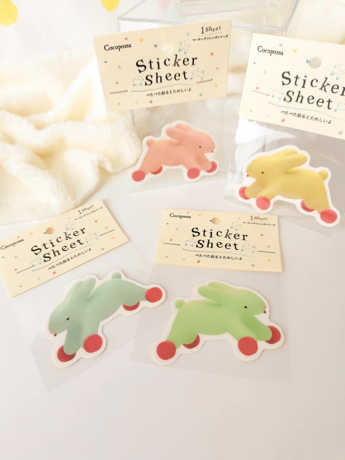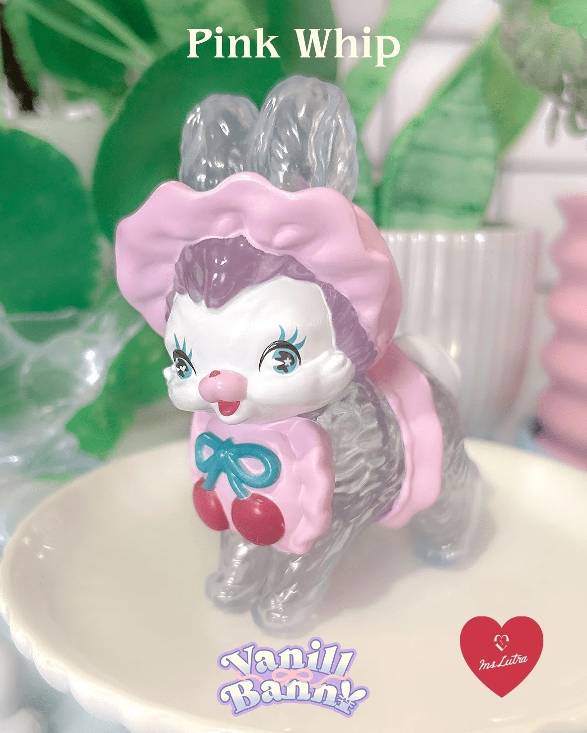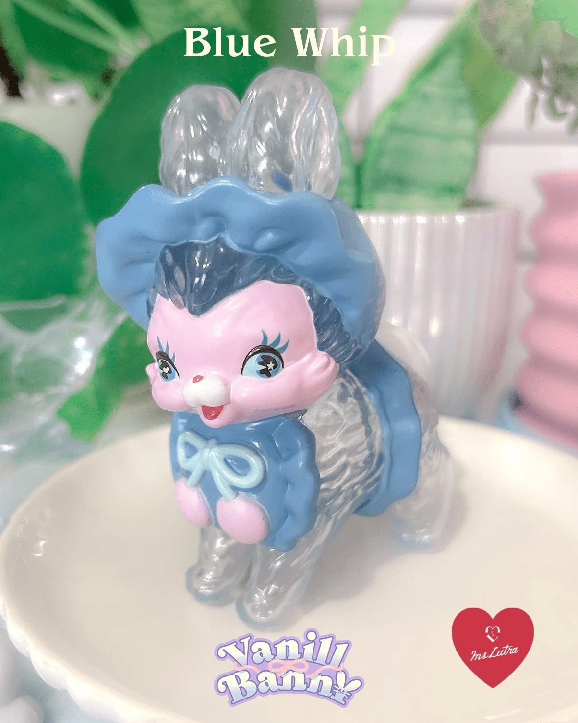 薄くミントが香るような透明ゼリー色のうさぎちゃんが、それぞれホイップクリームのようなボンネットをかぶっています。爽やかなVanill Bann¥とお天気の日にお散歩してね♡