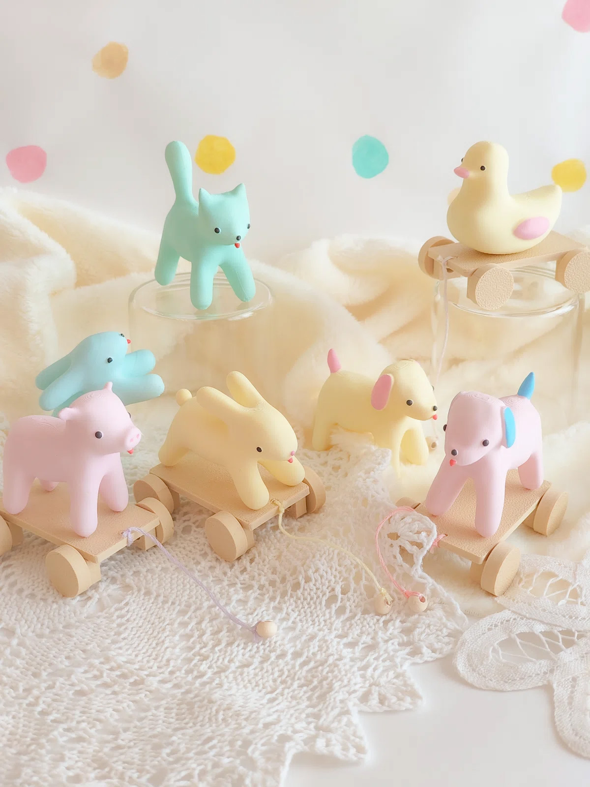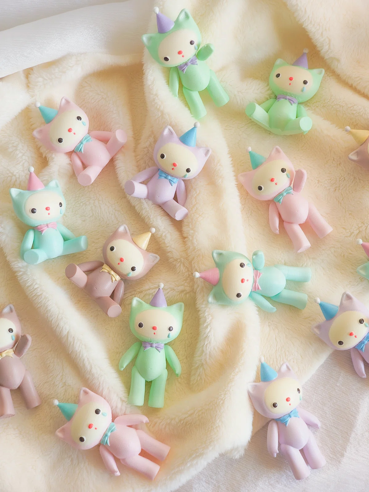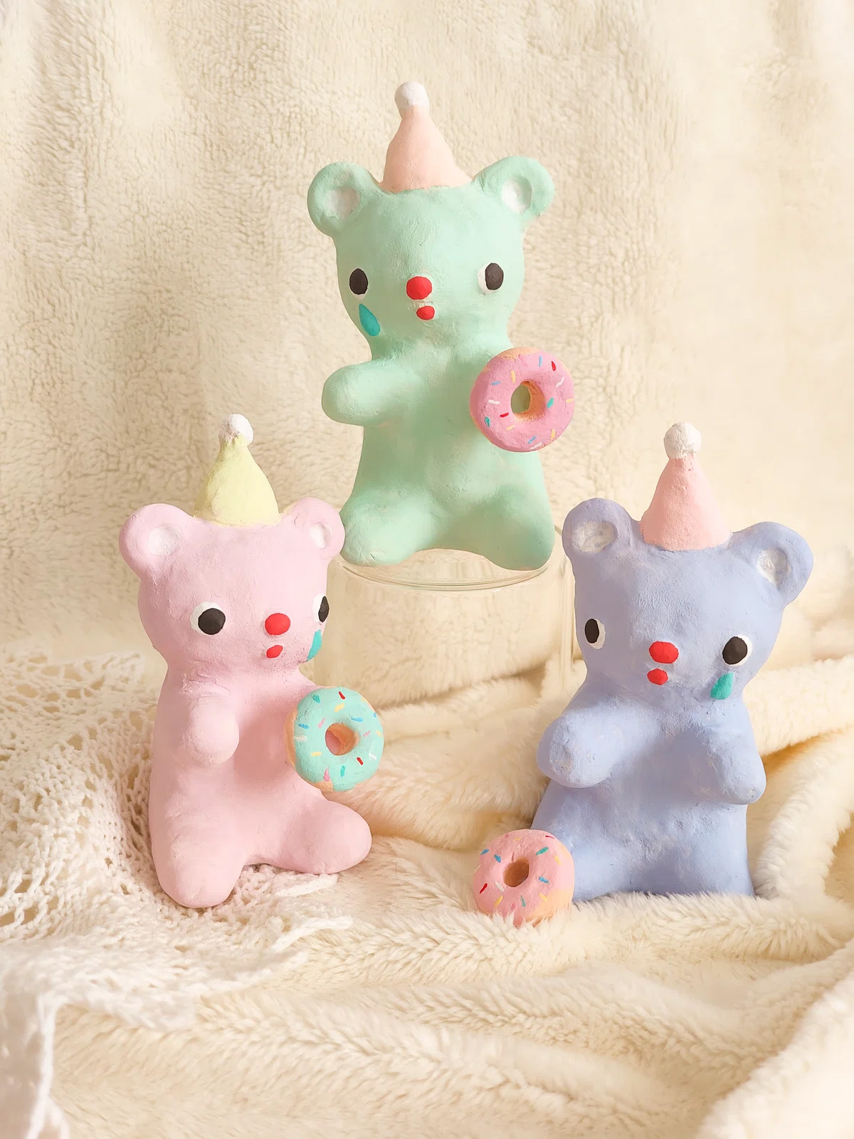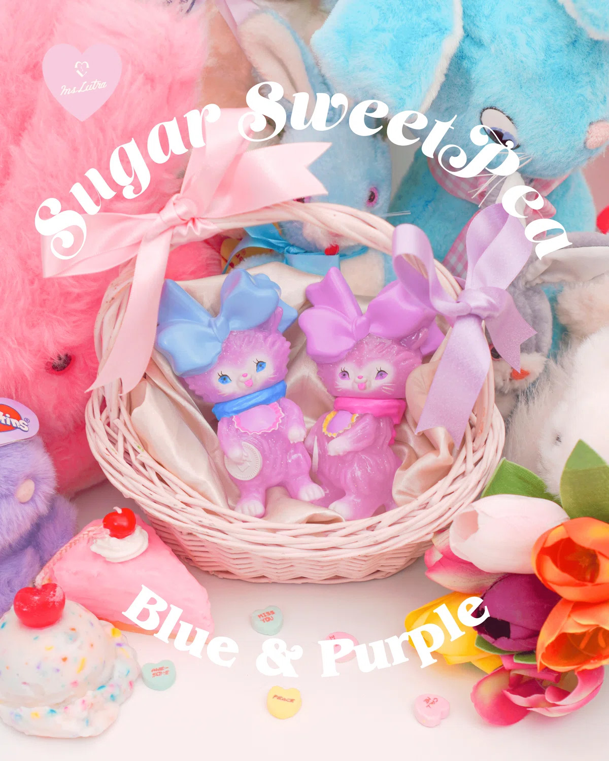 薄くミントが香るような透明ゼリー色のうさぎちゃんが、それぞれホイップクリームのようなボンネットをかぶっています。爽やかなVanill Bann¥とお天気の日にお散歩してね♡