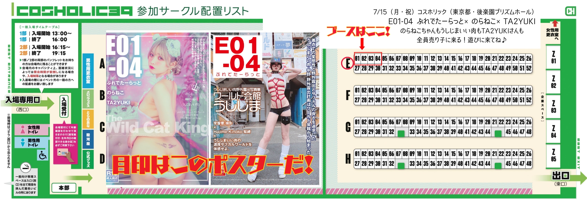 のらねこちゃん、TA2YUKIさん、うしじまいい肉本人も売り子として参加します♪