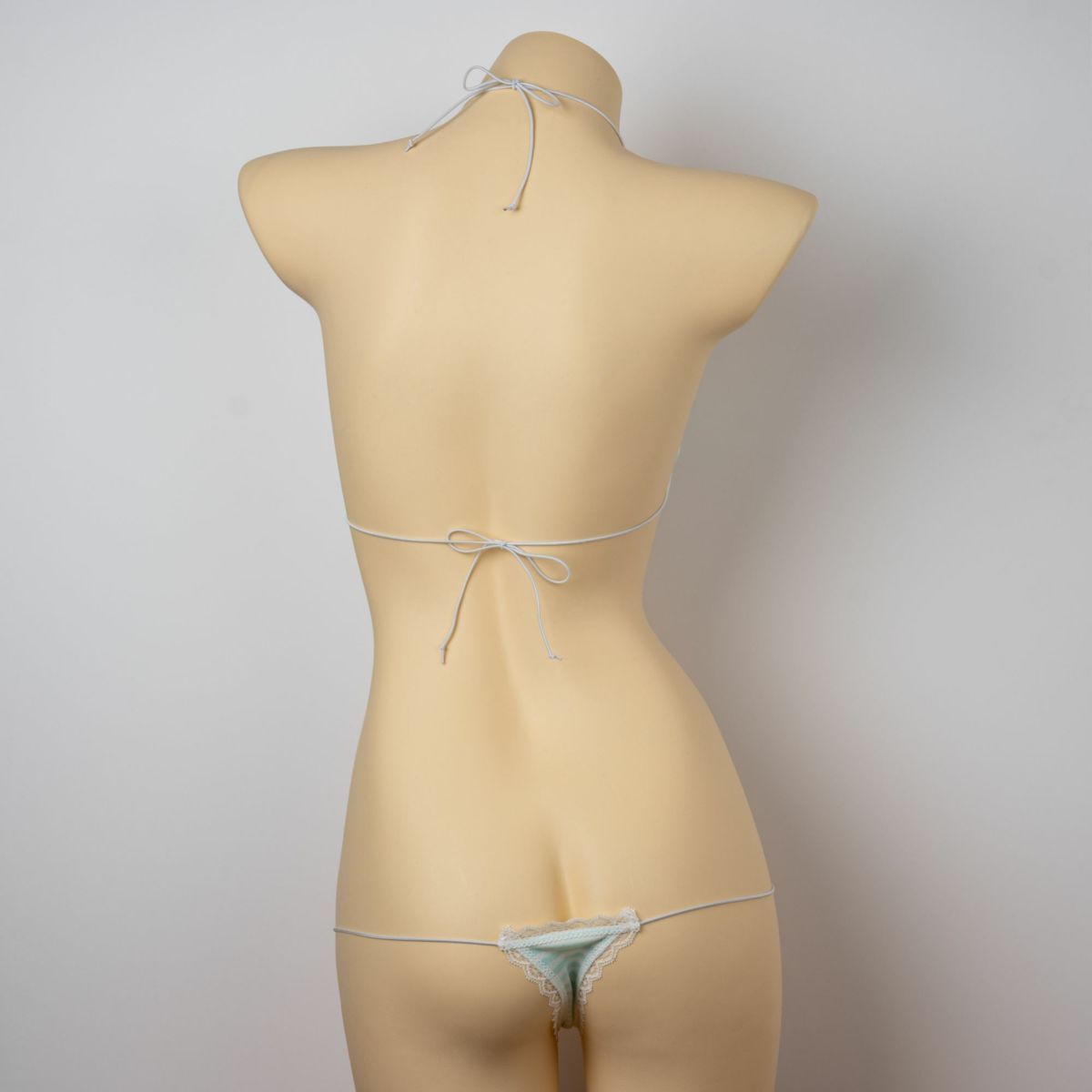 他の画像を見る しましま グラビアのマイクロ三角ブラ 極細紐 &しましま グラビアの超ローライズTバックパンツ 極細紐〈細ボーダーミント縞×白レース〉 Price ¥ 7,590 税込 ビジネス価格 ¥ 7,590 税込 カートに入れる お気に入りに登録する